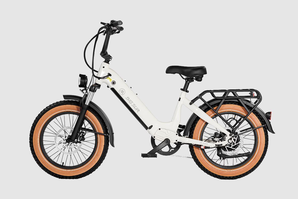 Everything you love about the original Big Sur is back! Now sporting 20" x 4" fat tires, Big Sur Sport is smaller and lighter, but it's just as fun and performant as Big Sur 26", if not more so! This bike retains the original's class 2/3 rating (20mph and 28mph top speed using the throttle and PAS respectively), as well as its safety features, including big 203mm brake rotors, LG 21700 battery cells, and a full UL2849 certification. Equipped standard with the AIMA Comfort XL seat and an MIK rear rack, Big Sur Sport delivers the same level of power, comfort, and smoothness of its bigger brother.