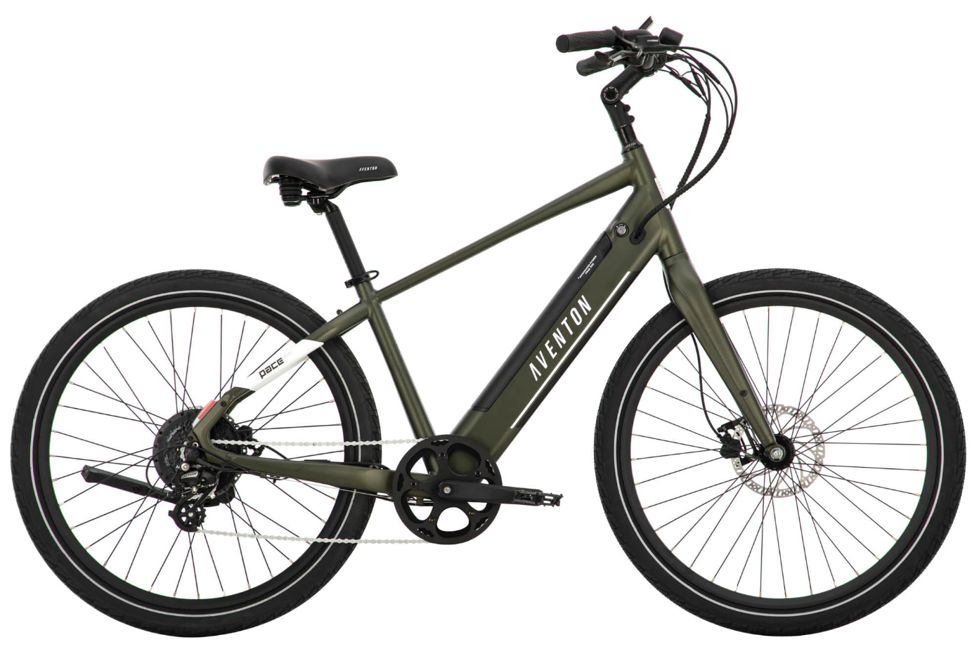 The Pace 500.3 comes out of the box as a Class II ebike, with pedal assist and throttle going up to 20 MPH. It can be unlocked to a Class III ebike and can go up to 28 MPH on pedal assist. The Pace 500.3 will also operate with the throttle unplugged and removed, should you want to ride in an area where throttles are prohibited. Aventon ebikes are built to the IPX4 water-resistant standard. IPX4 means that your bike is resistant to water splashes from any direction. This means it’s OK to ride your ebike in light rain. It won’t be harmed by spray from a wet road or raindrops. Your ebike is not intended to be exposed to prolonged rain or submerged or subjected to a pressurized spray. Don’t use a pressure washer or sprayer to clean your ebike. *Using PAS Eco throughout flat terrain with a rider weight of 160 lb.