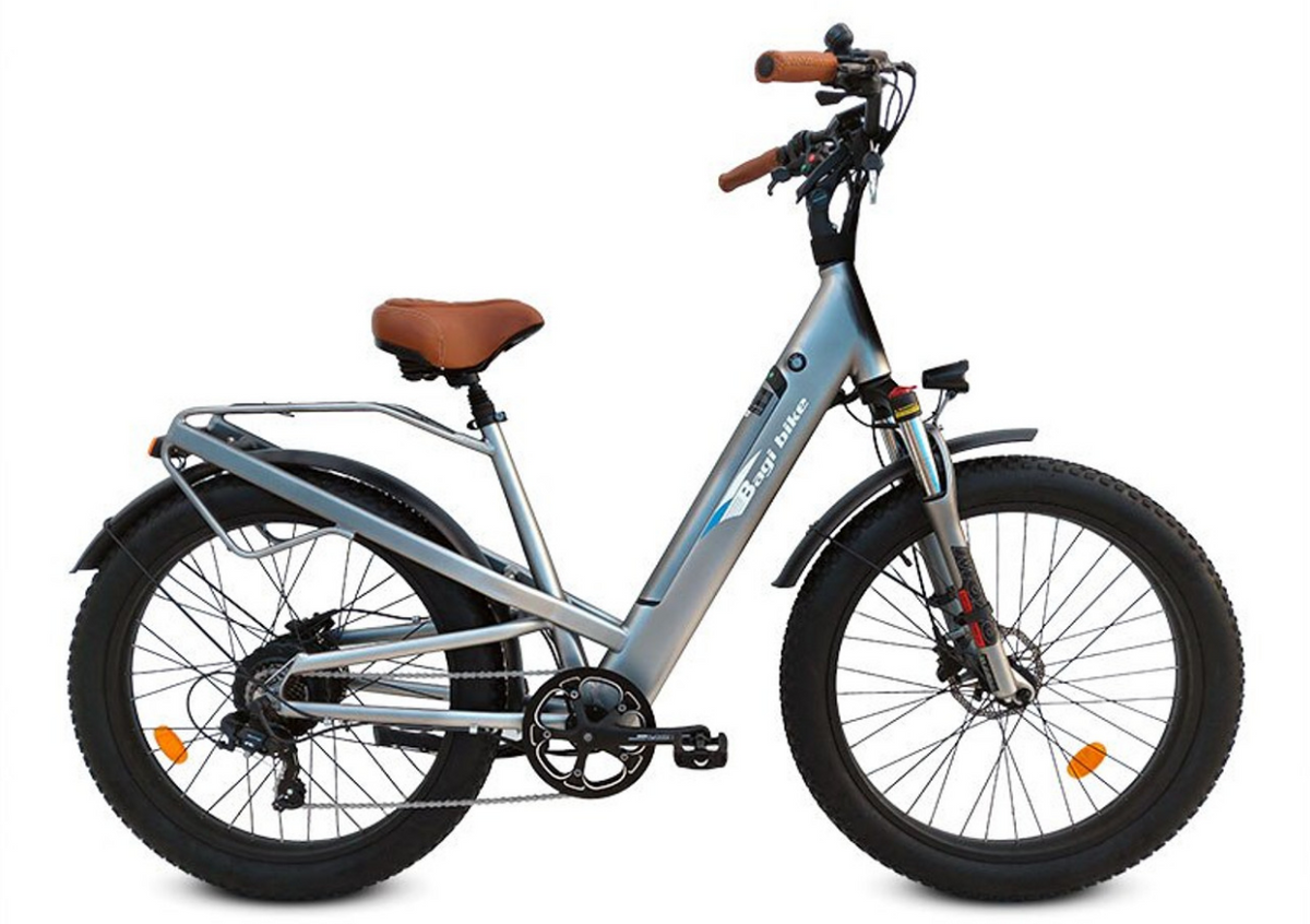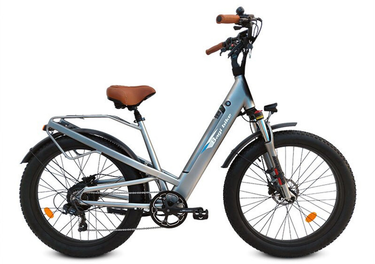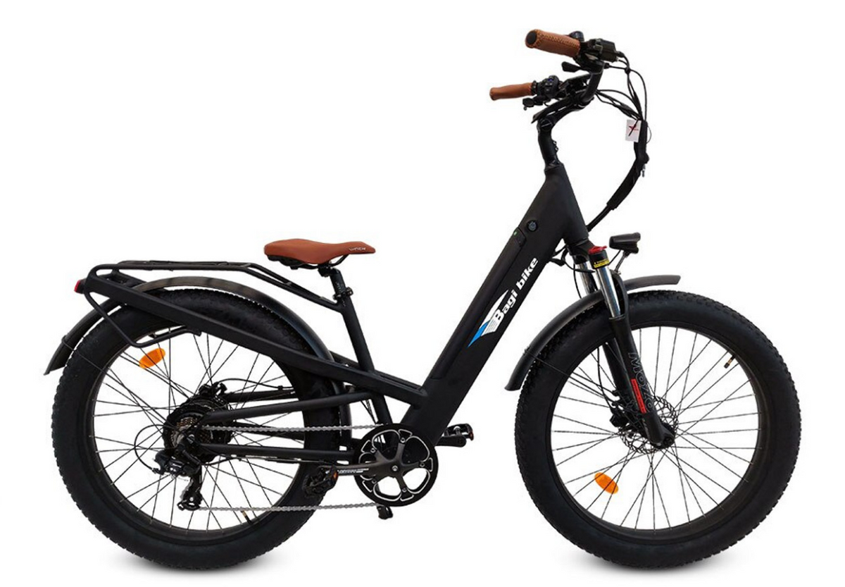 The Bagi B26 is the most comfortable e-bike in the BagiBike lineup. A step through frame and upright ride feels good with the matching leather saddle and grips. Hours of comfortable riding and with a powerful 48 volt electrical system makes this a wonderful touring electric bicycle.