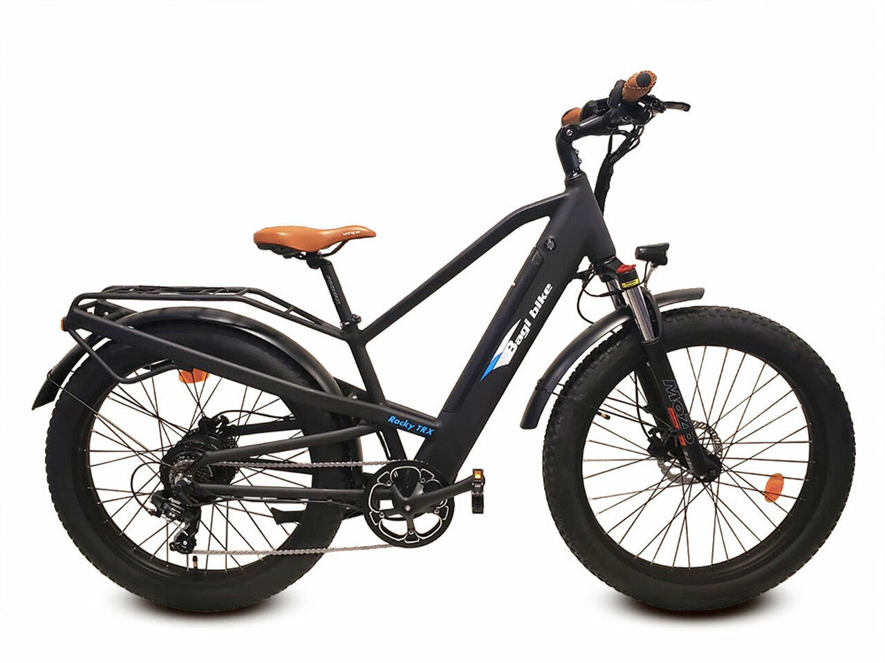 The all new Bagi Bike Rocky TRX is the ultimate all-terrain touring bike. 28mph top speed, high torque motor can climb steep hills without pedaling. An upright seating position, pedal forward design and quick adjust handlebars make long rides comfortable and fun.