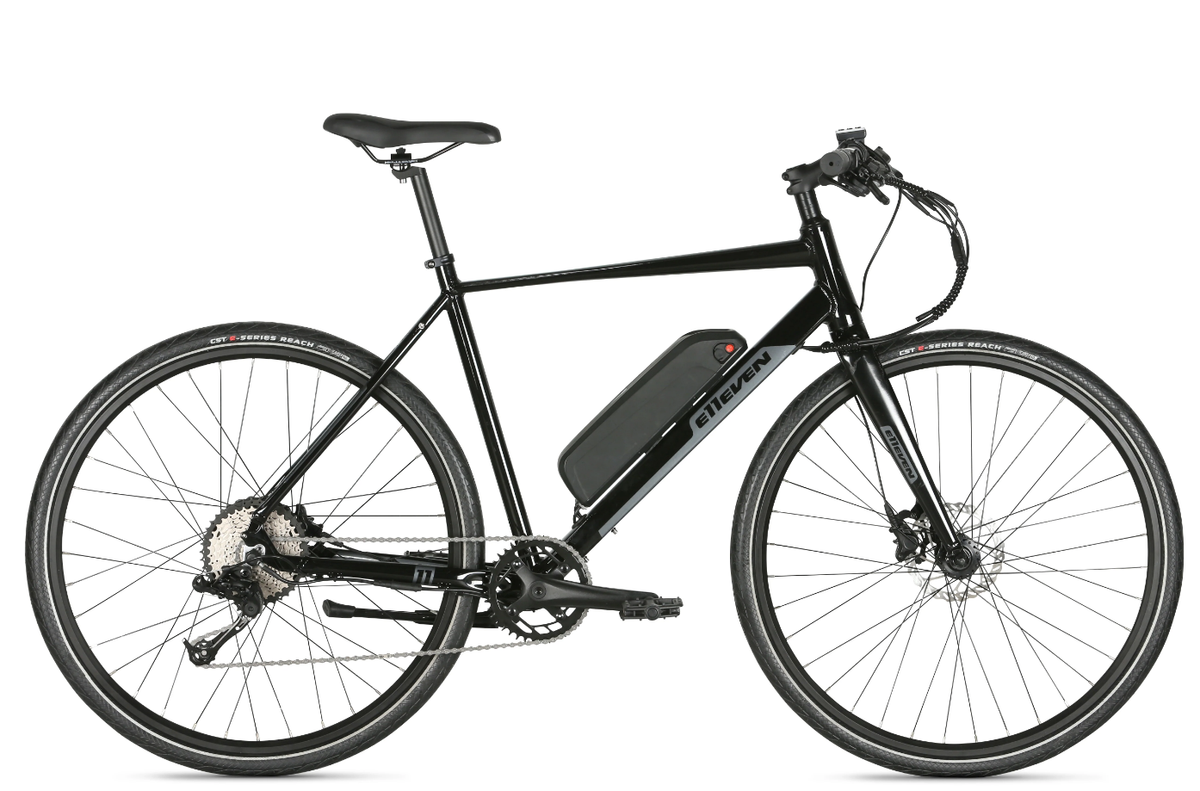 e11even’s eFitness model is designed for those who are looking for an efficient way to get around, get some exercise, and get a little boost along the way. The powerful 500W efficient hi-torque rear hub motor reaches top speeds of 20mph, and the 48V/ 10AH battery provides a range of 25-35 miles, depending on rider weight and assist level used. With a very reliable 1x10 drivetrain, and wide range 11x42 gearing, the eFitness is ready to zip past stuck traffic, as well as provide the right gearing and power to haul groceries or work supplies.