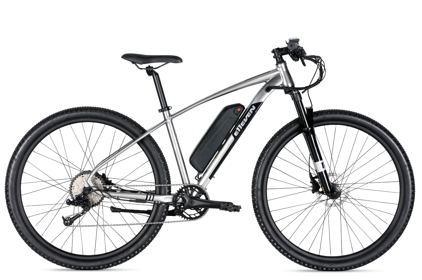 Designed to be fun on everything from road, to path, to trail, e11even’s eM1x10 delivers the same level of sporty fun as our non-electric M1x10, while empowering your rides! It uses a powerful, 500W efficient hi-torque rear hub motor that boasts top speeds of 20mph. And, with a lightweight 48V/ 10AH Lithium Ion battery, you’ll have the power to roam 25-35 miles on a charge. The smooth shifting 1x10 drivetrain has an 11x42 wide range rear cassette to make sure you always have the gear you want, on all terrain.