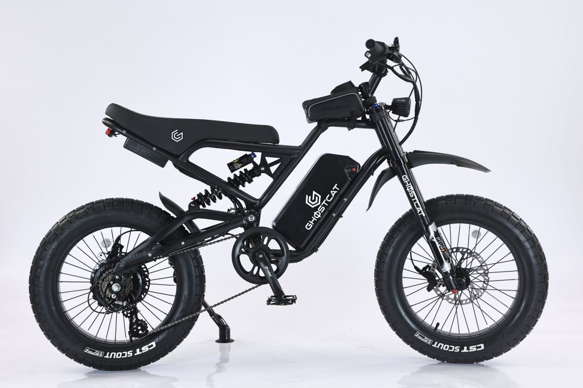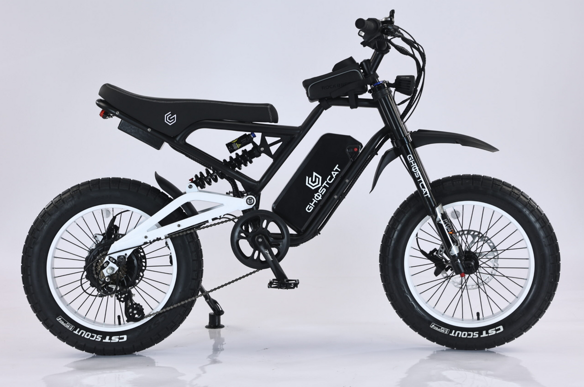 Introducing the 3rd generation GHOSTCAT F3X all-terrain CST fat tire electric bike specifically engineered to maneuver as a high-performance lightweight motorcycle inspired Dual Sport bike.
