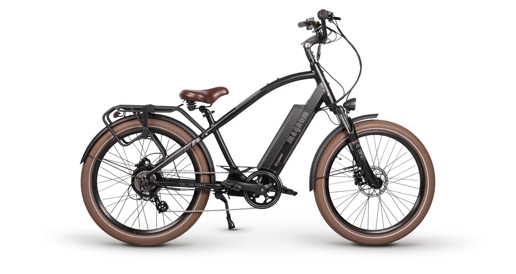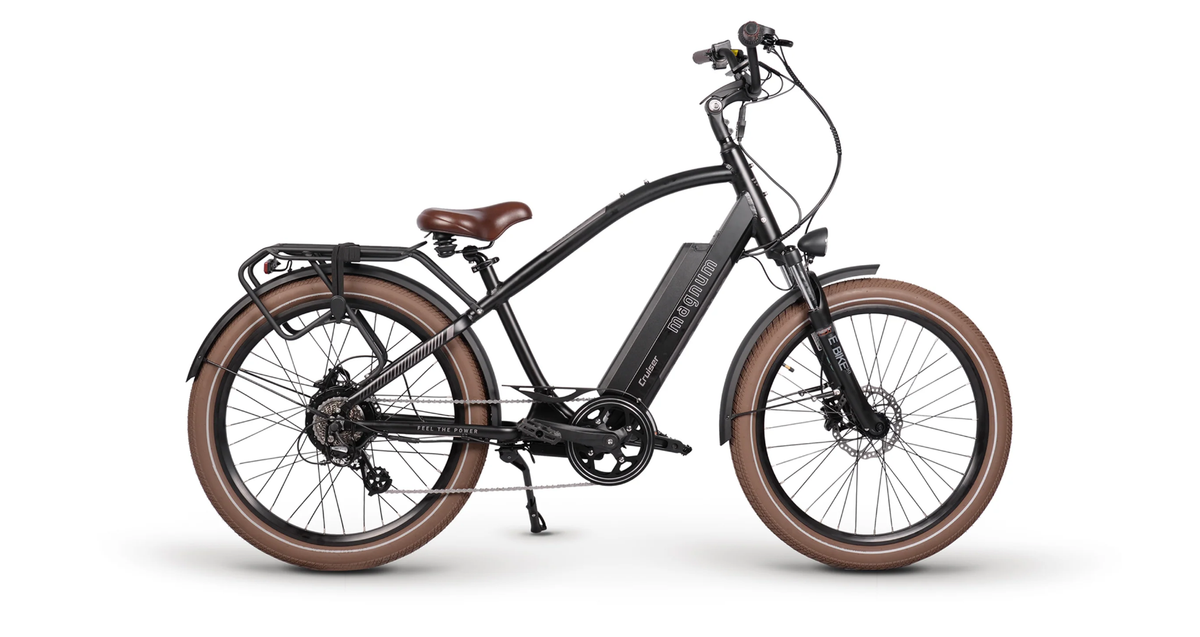 The ergonomic, pedal forward cruiser position lets you cruise the roads in comfort and style. Large, plush saddles and wide tires for stability and comfort complete the stylish, carefree Magnum Cruiser experience.