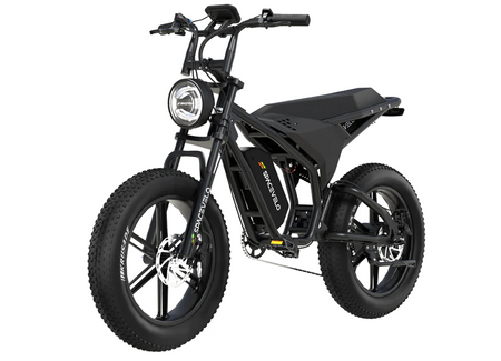 Its unique, ergonomic saddle enhances rider comfort while adding to the bike's modern aesthetic. The convenient thumb throttle provides effortless acceleration, while the KENDA 20’’ puncture-resistant tires and Dual Crown Coil Fork ensure stability and control.