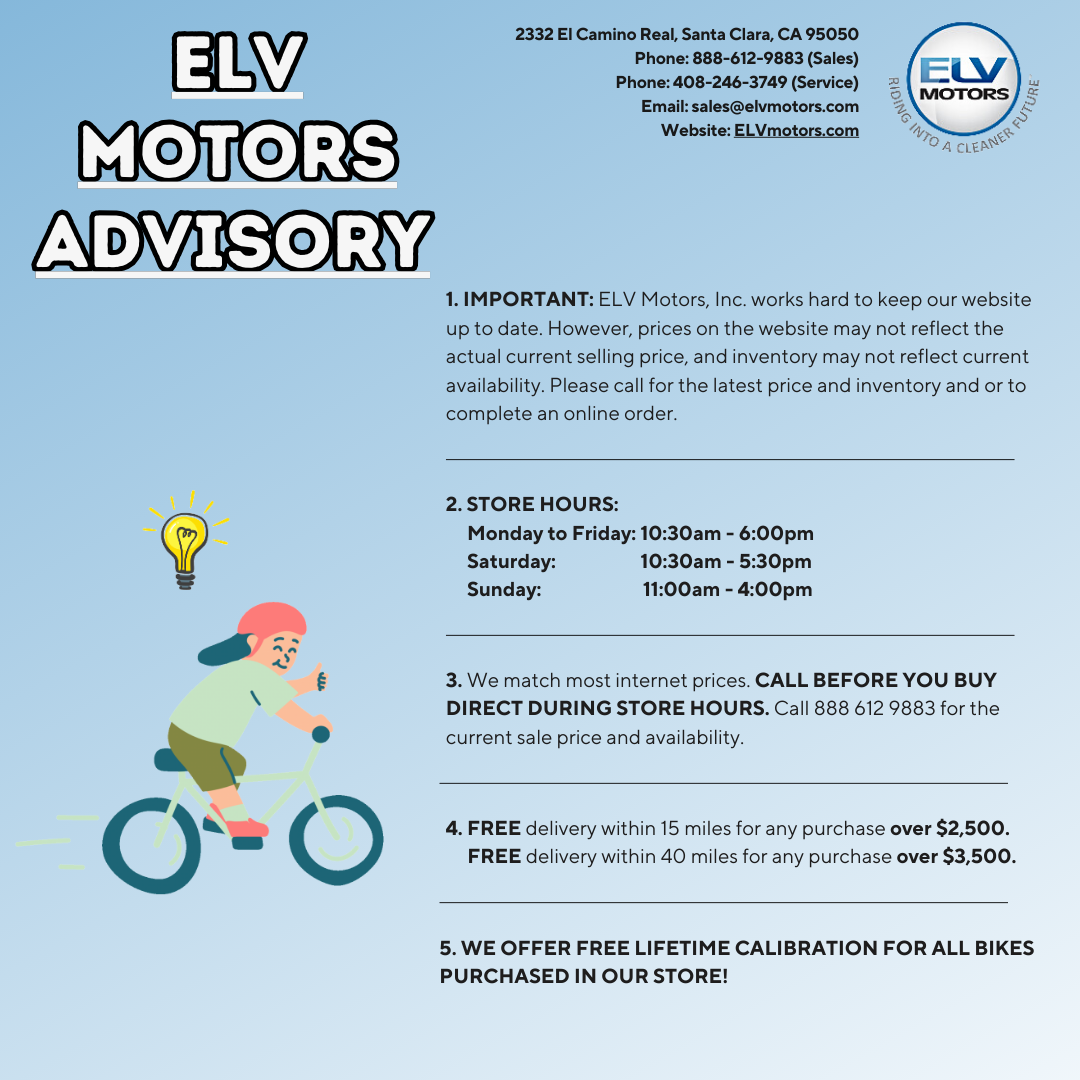 WELCOME TO ELV MOTORS - AN E-BIKE SHOP IN CALIFORNIA